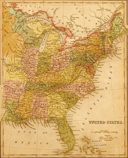 Eastern USA 1844 White Modern Wood Framed Art Print with Double Matting by Vintage Maps