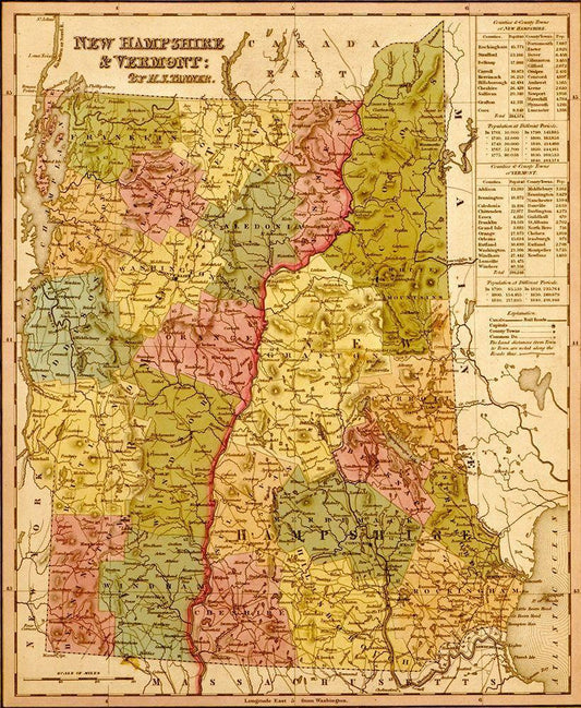 New Hampshire and Vermont 1844 White Modern Wood Framed Art Print with Double Matting by Vintage Maps