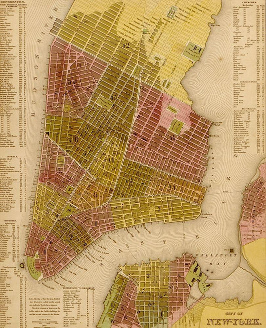 Manhattan Island 1844 White Modern Wood Framed Art Print with Double Matting by Vintage Maps