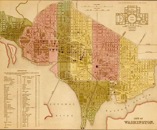 Washington DC 1844 White Modern Wood Framed Art Print with Double Matting by Vintage Maps