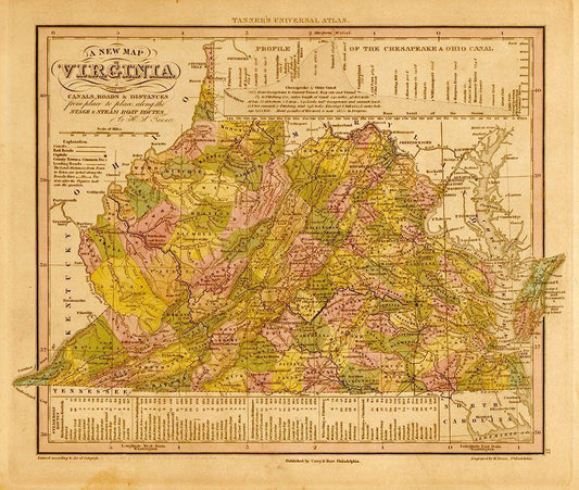 Virginia 1844 White Modern Wood Framed Art Print with Double Matting by Vintage Maps