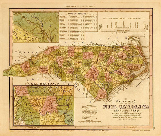 North Carolina 1844 White Modern Wood Framed Art Print with Double Matting by Vintage Maps