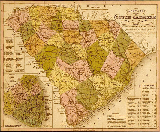 South Carolina 1844 White Modern Wood Framed Art Print with Double Matting by Vintage Maps