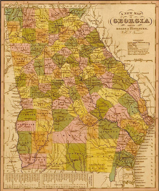Georgia 1844 White Modern Wood Framed Art Print with Double Matting by Vintage Maps