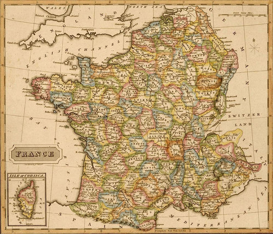 France 1817 White Modern Wood Framed Art Print with Double Matting by Vintage Maps