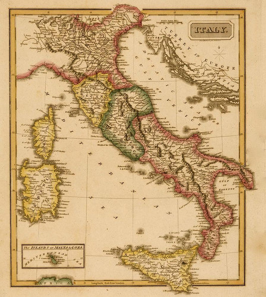 Italy 1817 White Modern Wood Framed Art Print with Double Matting by Vintage Maps