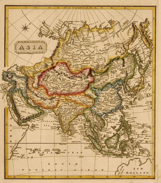 Asia 1817 White Modern Wood Framed Art Print with Double Matting by Vintage Maps