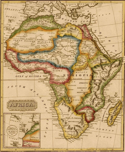 Africa 1817 White Modern Wood Framed Art Print with Double Matting by Vintage Maps