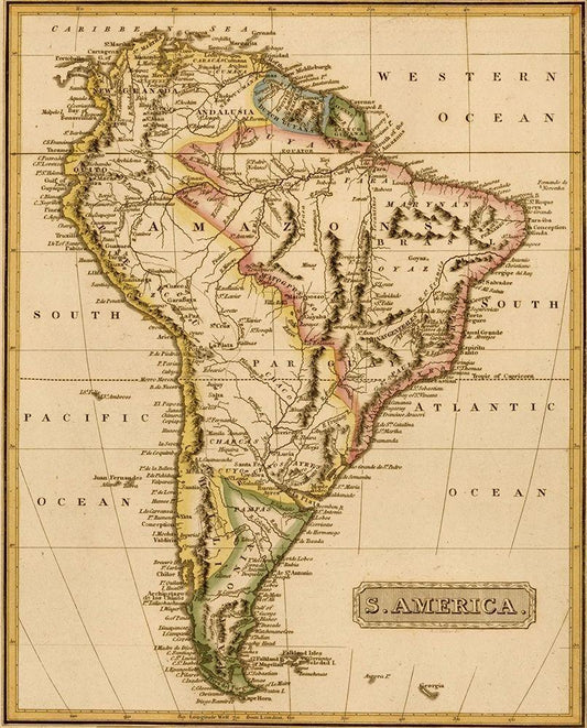 South America 1817 White Modern Wood Framed Art Print with Double Matting by Vintage Maps