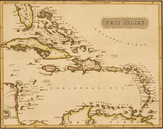 West Indies 1817 White Modern Wood Framed Art Print with Double Matting by Vintage Maps