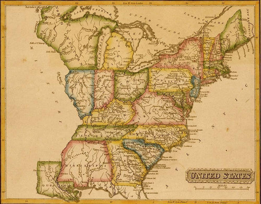 United States 1817 White Modern Wood Framed Art Print with Double Matting by Vintage Maps