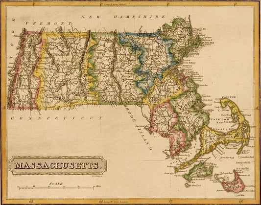 Massachusetts 1817 White Modern Wood Framed Art Print with Double Matting by Vintage Maps