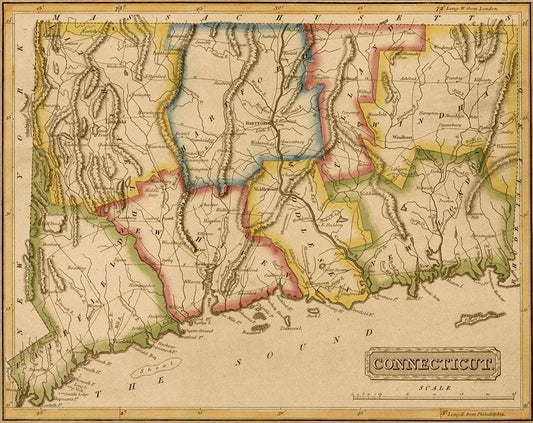 Connecticut 1817 White Modern Wood Framed Art Print with Double Matting by Vintage Maps