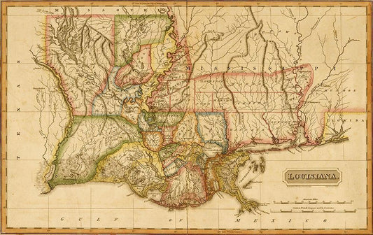 Louisiana 1817 White Modern Wood Framed Art Print with Double Matting by Vintage Maps