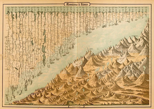 Rivers and Mountains of the World 1862 White Modern Wood Framed Art Print with Double Matting by Vintage Maps