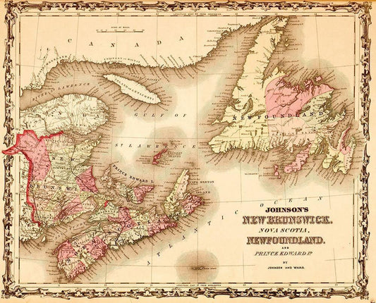New Brunswick and Newfoundland 1862 White Modern Wood Framed Art Print with Double Matting by Vintage Maps
