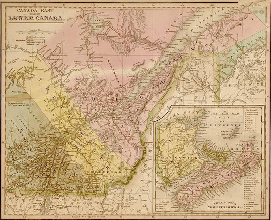 Lower Canada 1844 White Modern Wood Framed Art Print with Double Matting by Vintage Maps