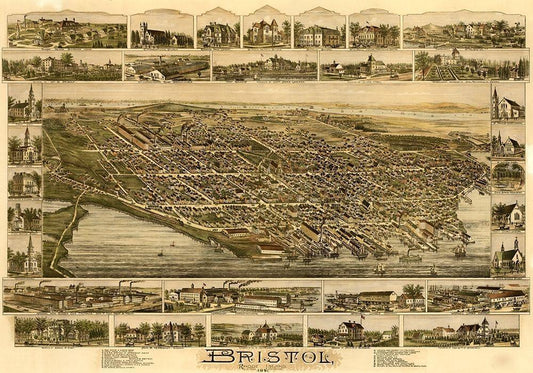 Bristol Rhode Island 1891 White Modern Wood Framed Art Print with Double Matting by Vintage Places