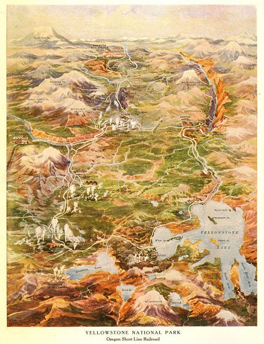 Yellowstone National Park White Modern Wood Framed Art Print with Double Matting by Vintage Places