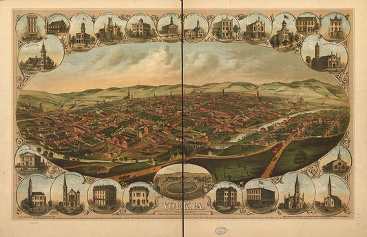 View of York Pennsylvania White Modern Wood Framed Art Print with Double Matting by Vintage Places