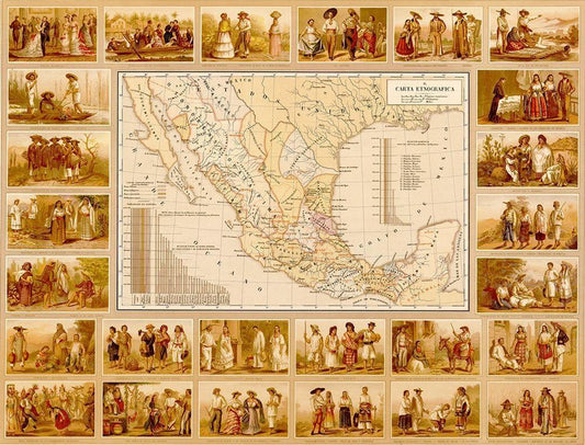 Ethnographic Map of Mexico White Modern Wood Framed Art Print with Double Matting by Vintage Maps