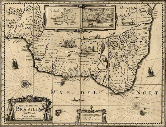 Brazil 1630 White Modern Wood Framed Art Print with Double Matting by Vintage Maps
