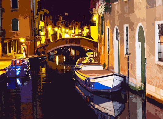 Venice Lights White Modern Wood Framed Art Print with Double Matting by Ghanooni, Sarah