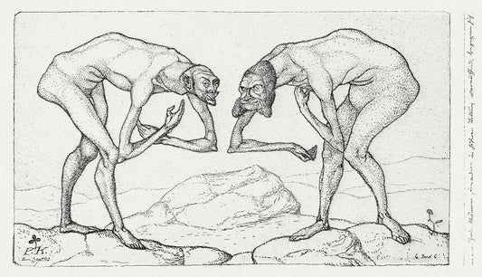 Two Men Meet-Each Believing the Other to Be of Higher Rank White Modern Wood Framed Art Print with Double Matting by Klee, Paul