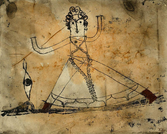 Witch with a Comb White Modern Wood Framed Art Print with Double Matting by Klee, Paul