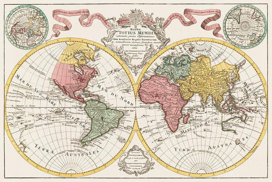 A map of the world 1775 White Modern Wood Framed Art Print with Double Matting by L isle, de Guillaume