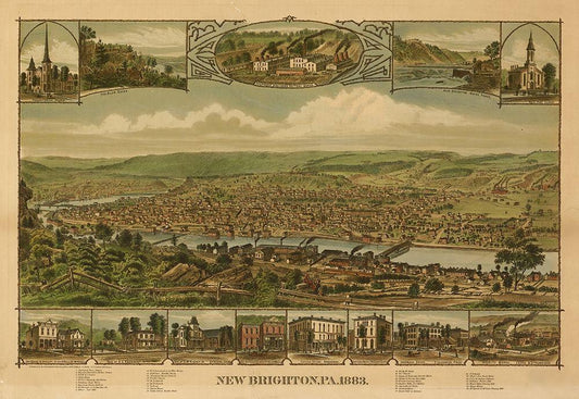 New Brighton-Pennsylvania 1883 White Modern Wood Framed Art Print with Double Matting by Vintage Places