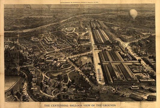 Balloon View of the Centennial Fairgrounds in Philadelphia-Pennsylvania 1876 White Modern Wood Framed Art Print with Double Matting by Vintage Places