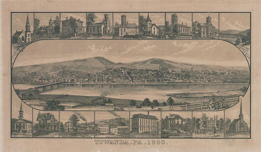 Towanda-Pennsylvania 1880 White Modern Wood Framed Art Print with Double Matting by Vintage Places