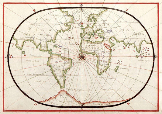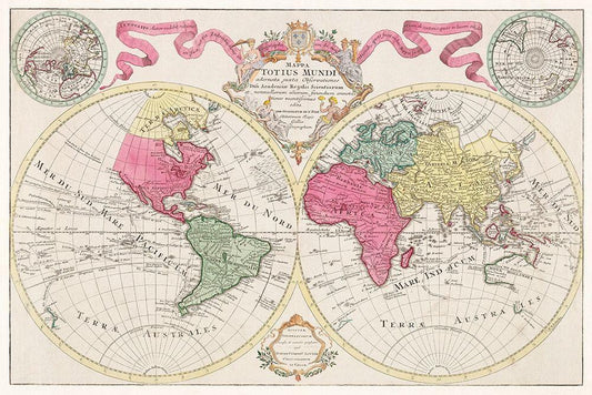 Mappa totius mundi adornata juxta observationes 1682 White Modern Wood Framed Art Print with Double Matting by L isle, Guillaume de