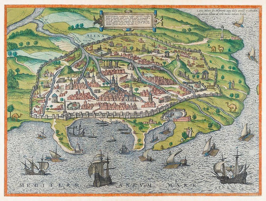 Map of Alexandria 1575 White Modern Wood Framed Art Print with Double Matting by Braun, Georg