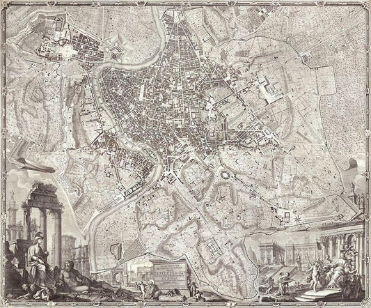 The Nolli Map White Modern Wood Framed Art Print with Double Matting by Campana, Pietro