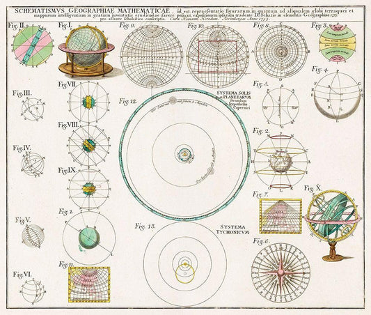Schematismus Geographiae Mathematicae 1753 White Modern Wood Framed Art Print with Double Matting by Homann, Johann Baptista