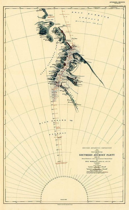 Route and Surveys of the Southern Journey Party-1909 White Modern Wood Framed Art Print with Double Matting by Royal Geographic Society England