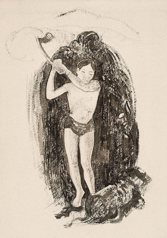 Man with an Ax White Modern Wood Framed Art Print with Double Matting by Gauguin, Paul
