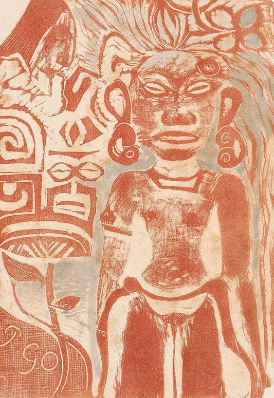 Tahitian Idol the Goddess Hina White Modern Wood Framed Art Print with Double Matting by Gauguin, Paul