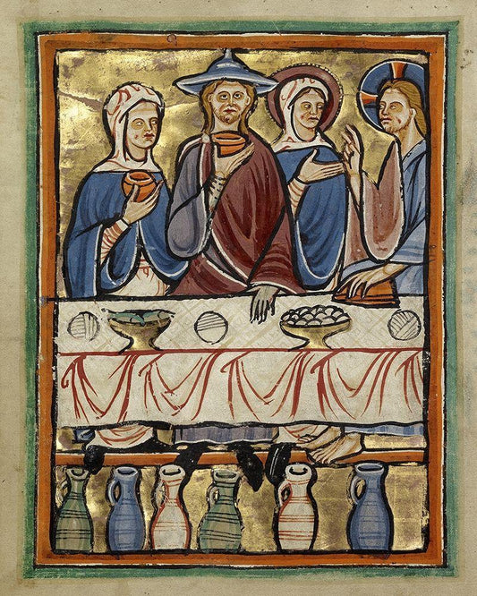 The Marriage at Cana White Modern Wood Framed Art Print with Double Matting by Unknown 12th Century English Illuminator