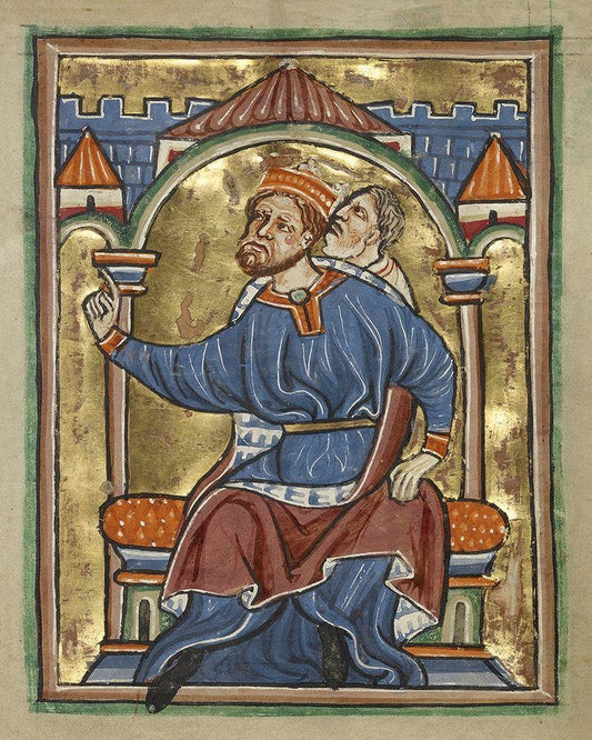 Herod Enthroned White Modern Wood Framed Art Print with Double Matting by Unknown 12th Century English Illuminator