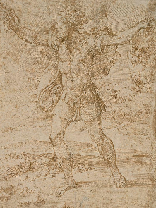 David with the Head of Goliath White Modern Wood Framed Art Print with Double Matting by Parmigianino, F.