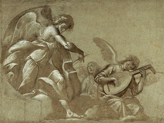 Angel Musicians (recto); Head Studies (verso) White Modern Wood Framed Art Print with Double Matting by Morazzone (Pie Francesco Mazzuchelli)