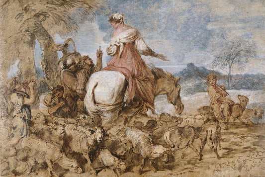 Pastoral Journey White Modern Wood Framed Art Print with Double Matting by Castiglione, Giovanni Benedetto