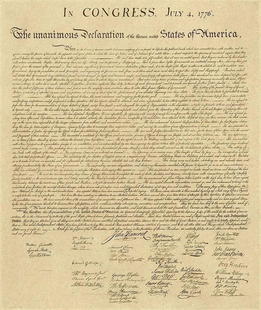 U.S. Declaration of Independence - Decorative Sepia White Modern Wood Framed Art Print with Double Matting by U.S. Government