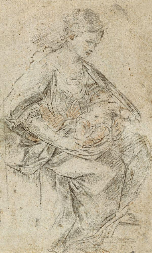 The Virgin and Child on a Grassy Bench White Modern Wood Framed Art Print with Double Matting by Unknown