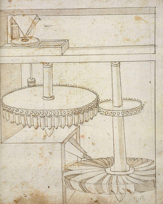 Folio 39: mill with horizontal water wheel White Modern Wood Framed Art Print with Double Matting by Martini, Francesco di Giorgio
