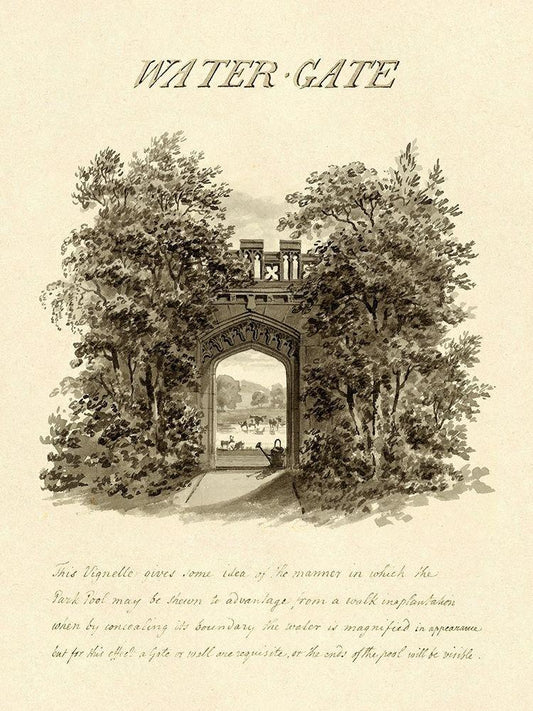 Water-Gate, 1813 White Modern Wood Framed Art Print with Double Matting by Repton, Humphry
