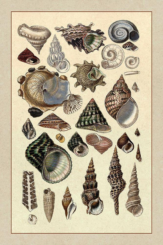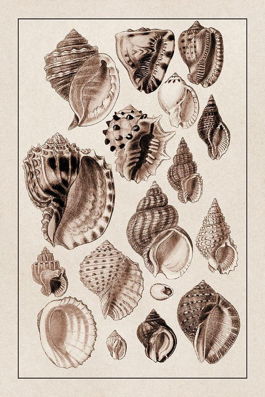 Shells: Purpurifera (Sepia) White Modern Wood Framed Art Print with Double Matting by Sowerby, G.B.